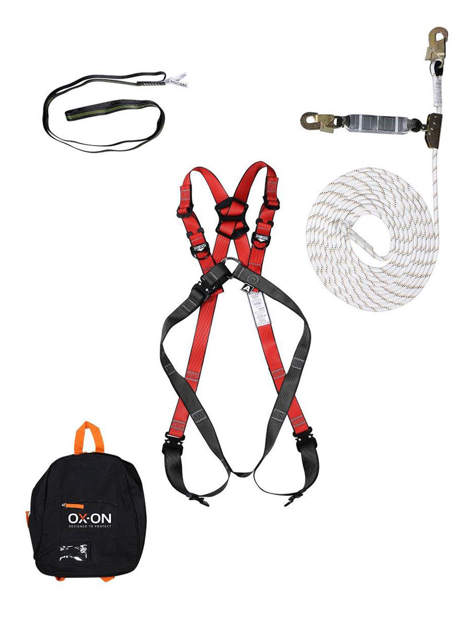 Selen är gjord av ett robust 2-färgad webbing-band och har testats till 150 kg. Med OX-ON Fall Arrester Basic får du ett falldämparpaket och ett glidlås i galvaniserat stål med autolockkarbin monterad på ett 10 meter kärnmantelrep (12 mm) med stor slitstyrka och med egenskaper som gör att repet inte kan vridas.