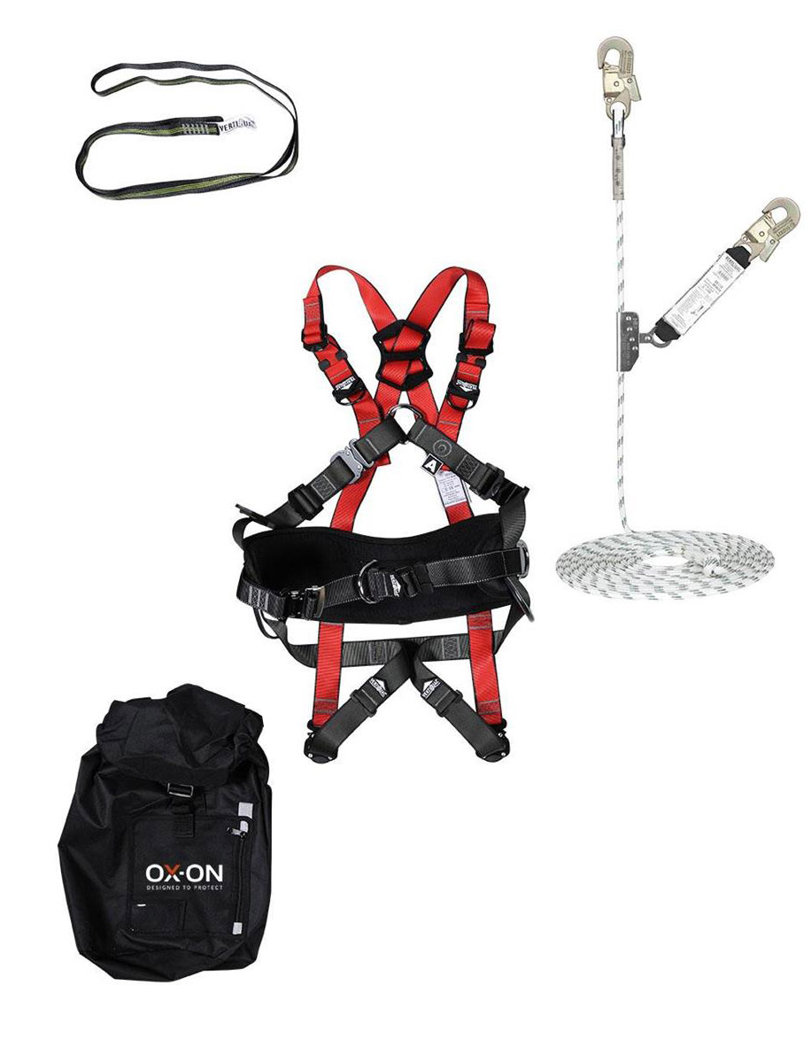 Selen är gjord av ett robust webbing-band och har testats till 150 kg. Med OX-ON Fall Arrester Supreme får du ett effektivt dämpar-paket och en robust glidlås i rostfritt stål med autolock-karbinhake monterad på ett 10 meter kanttestat kärnmantelrep (12 mm) med stor slitstyrka och med egenskaper som gör att repet inte kan vridas.