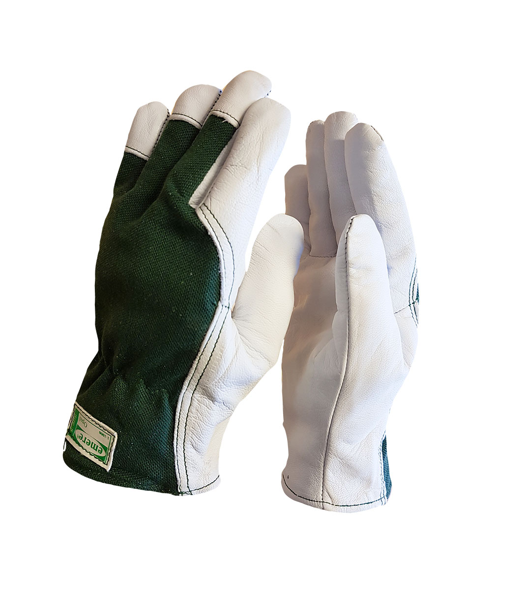 Fingertoppsförstärkt med skinn och ovanhand i bomulls-interlock.