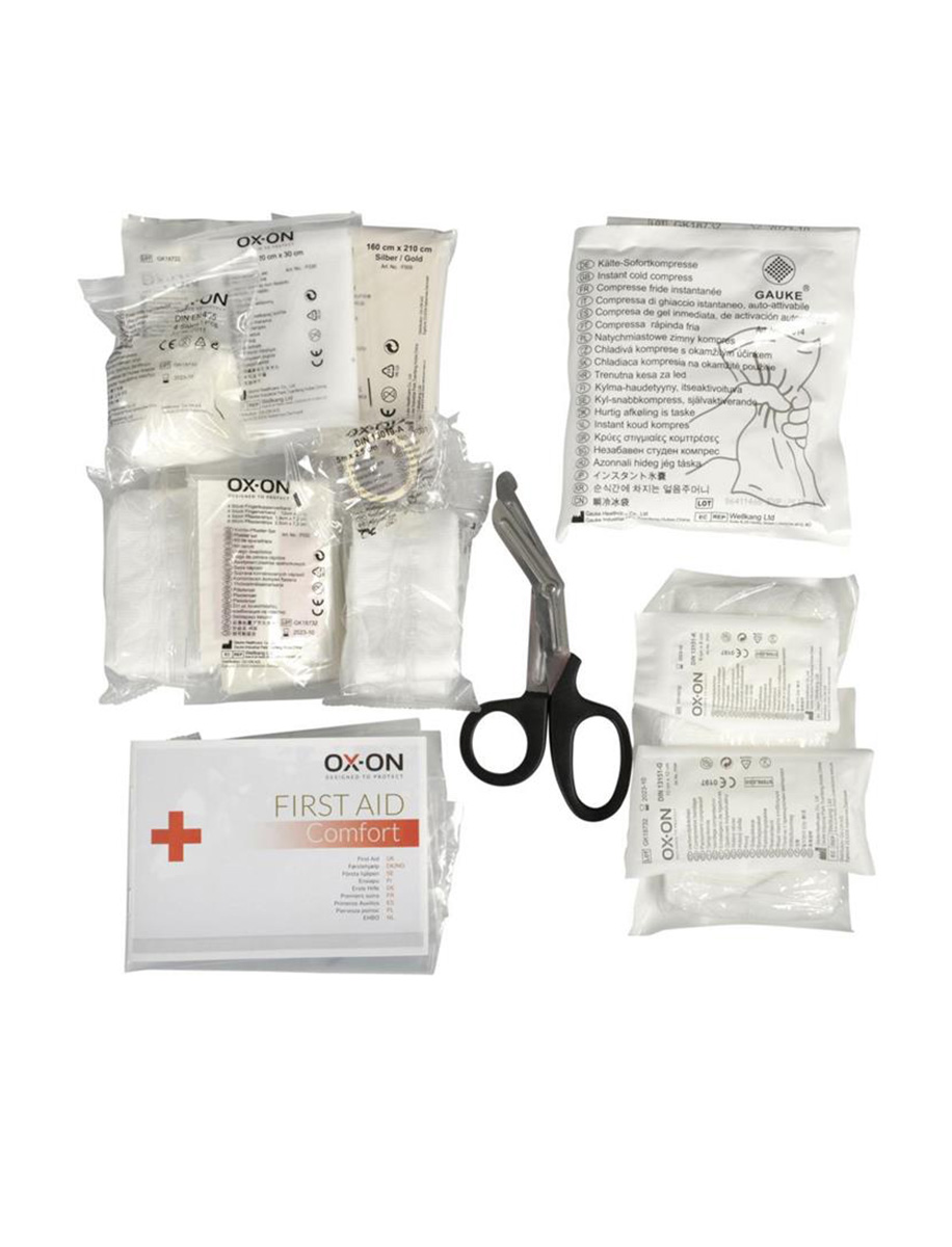 OX-ON First Aid Pro refill bag Comfort är en påse för påfyllning av OX-ON First Aid Pro Box Comfort (346.50). Påsen innehåller alla de saker som finns i första hjälpen-väskan, så att du kan vara säker på att alltid ha all viktig första hjälpen-utrustning till hands. Påsen uppfyller DIN 13157-standarden.