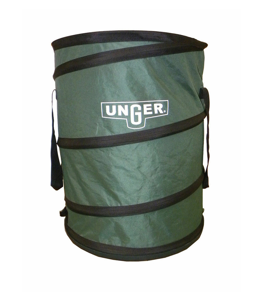 Mossäck”, den gröna avfallsbehållaren kan enkelt dras med dragöglorna fästa vid sidan utan att bära.